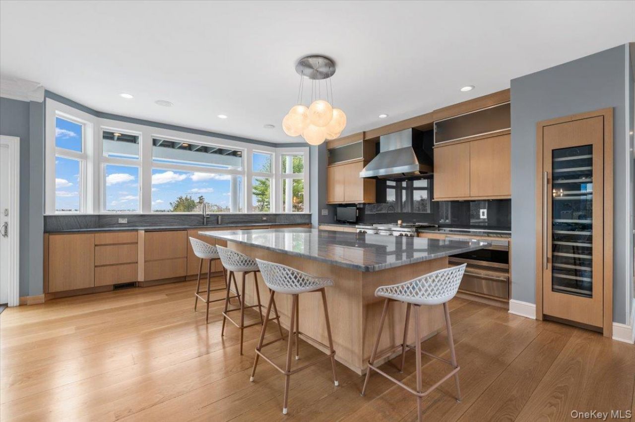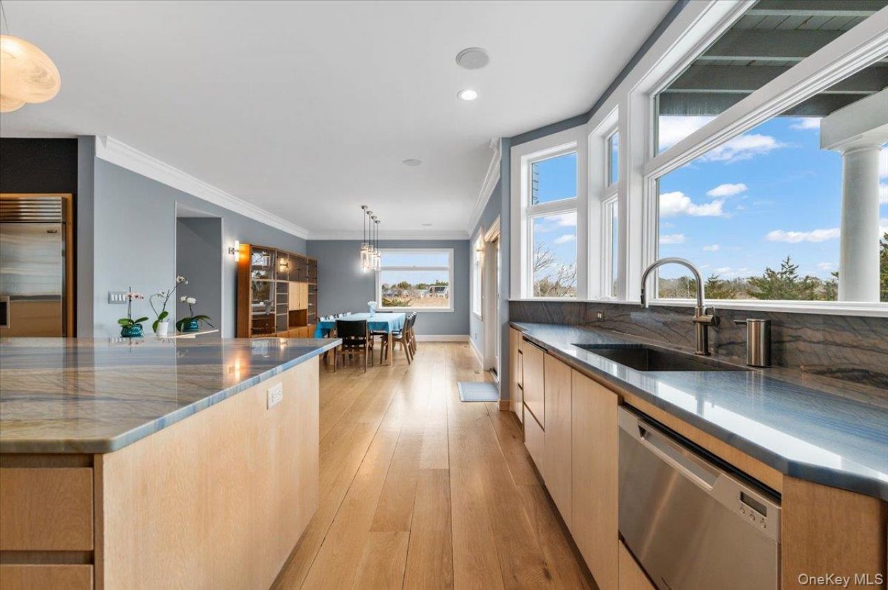 Welcome to 14 S Country Road, Westhampton Beach-an exceptional Hamptons retreat set on 1.05 private acres with waterfront access to Tanners Neck Creek and sweeping panoramic views across Moriches Bay toward Dune Road. Bordering a peaceful nature preserve, this beautifully designed 5-bedroom, 3.5-bath residence offers 3,659 sqft of light-filled living space with soaring 10-foot ceilings and expansive windows showcasing water views from nearly every room. Perfectly suited as a luxurious year-round residence, Hamptons getaway, or highly desirable summer rental investment property, the home captures breathtaking sunrise and sunset views in a truly tranquil setting.The renovated chef's kitchen serves as the heart of the home, featuring custom cabinetry, striking Azul Macaubas Quartzite countertops imported from Italy, a generous center island, Sub-Zero and Wolf appliances, a tall Thermador wine refrigerator, and one-and-a-half dishwashers. The kitchen flows seamlessly into the dining area with direct access to an expansive deck, perfect for outdoor entertaining and ready for a jacuzzi, creating the ideal setting for summer gatherings overlooking the water.The elegant living room with coffered ceiling and adjoining sitting room feature dramatic floor-to-ceiling windows that fill the space with natural light and frame the stunning views. The first floor has two bedrooms, one being a private en-suite providing flexibility as a guest suite, home office or additional living space. Located also on the first floor is a spacious laundry room with extensive storage, powder room, mudroom with access to the attached two-car garage.Upstairs, the spacious primary suite features a tray ceiling, private deck with beautiful water views, walk-in closet, and an oversized spa-like bath with jacuzzi tub. Two additional bedrooms, a full bath, and a large loft complete the second level.Additional highlights include white oak flooring, an imported Italian Piazzetta pellet stove, a solar hot water system, ground-level basement with a second washer and dryer, beautifully landscaped grounds with a charming gardener's cottage, and a basketball court. The expansive property also offers ample room to add a pool and tennis court, further enhancing the estate-like setting.Ideally located just minutes from the heart of Westhampton Beach Village, residents enjoy convenient access to fine dining, boutique shopping, cultural arts, ocean beaches, the train station, and the Hampton Jitney, offering the perfect balance of privacy, luxury, an